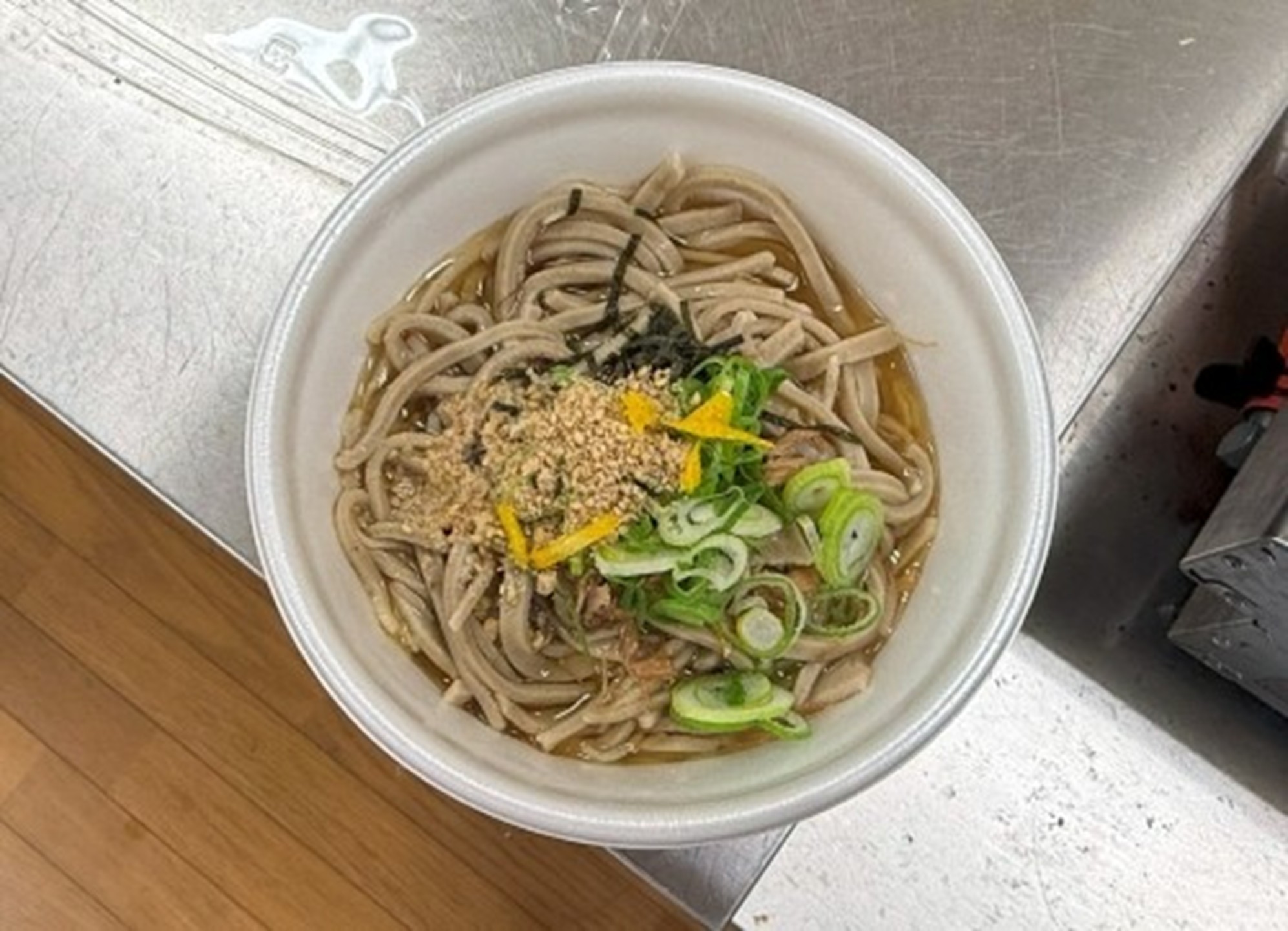 焼きサバを使った出汁で「隠岐そば」として試食し、参加者は打ち立てのそばの美味しさに感動していました。